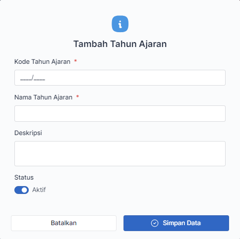 - Nama Tahun Ajaran: Dapat diisi dengan nama tahun ajaran.