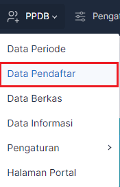 2. Setelah berada di halaman dasbor admin klik menu PPDB dan pilih Data Pendaftar.