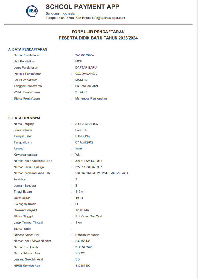 Untuk cetak formulir pendaftar pada aplikasi School Payment App (SPA), dapat ikuti langkah-langkah berikut :