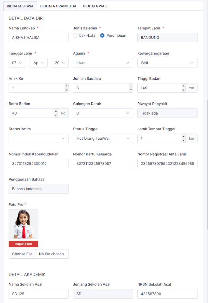 6. Isi biodata siswa.