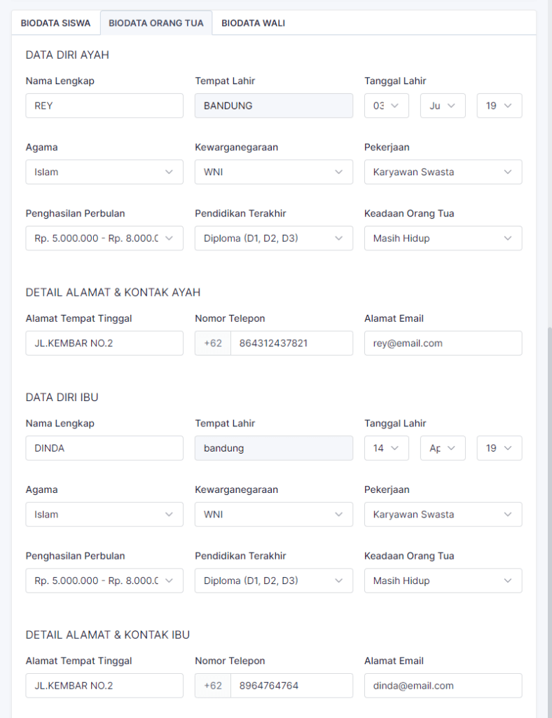 7. Isi Biodata Orang tua.