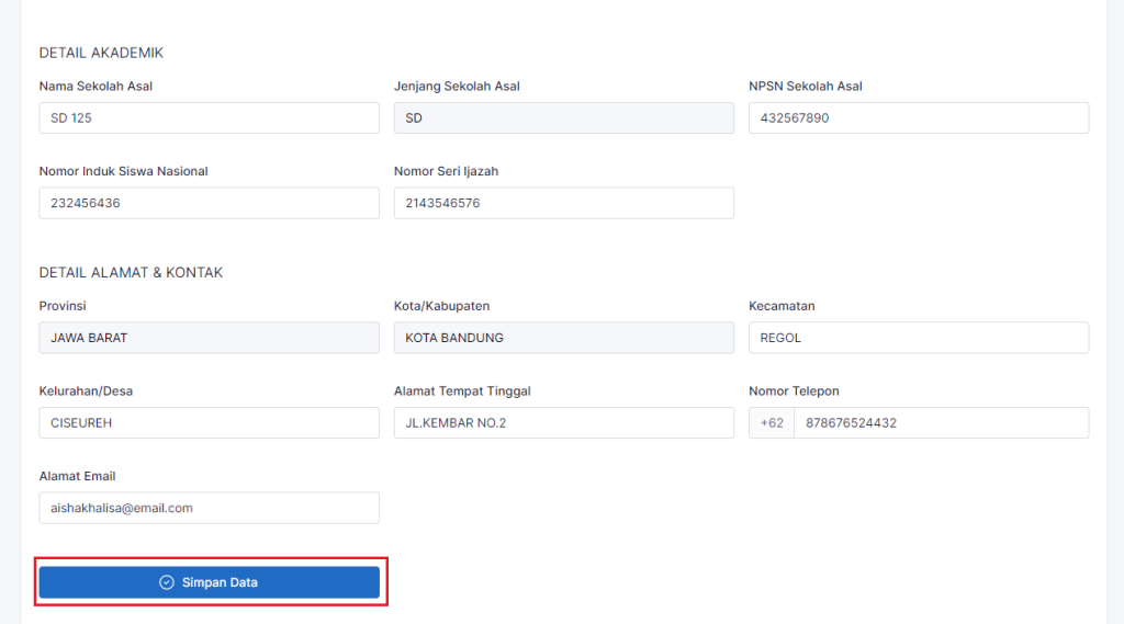 8. Isi detail akademik kemudian klik Simpan Data.