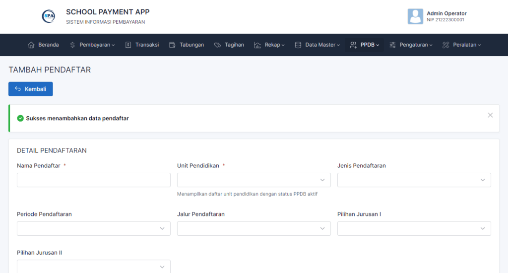 PPDB : Cara Menambah Data Pendaftar